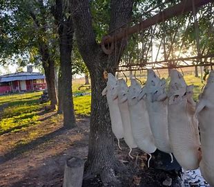 Carne de lechón, alimentado con pasturas naturales y granos de producción local. Se vende el lechón entero o medio y el peso puede variar entre los 10 y 15 kilos. Libres de agroquímicos, hormonas y antibióticos. Precio por kilo. El precio total varía en función de los kilos.